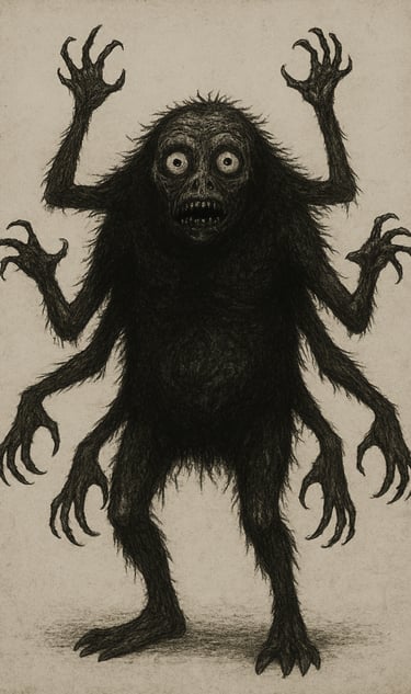 Braços longos e nervosos, terminando em dedos finos que se contorcem como tentáculos invisíveis.