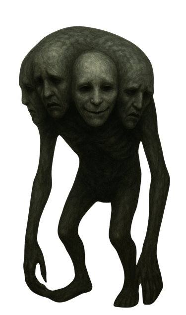 The LieBound, conhecido como Mentras, a personificação da mentira, é pequeno mas traiçoeiro. De corpo retorcido e pernas curtas, avança em saltos curvos, espalhando confusão a cada passo. Sua pele, como papel rasgado, muda de tom a cada olhar, enquanto a boca larga sussurra verdades distorcidas que corroem a confiança. Seus olhos, quase invisíveis, multiplicam-se nas sombras, refletindo segredos não ditos. Onde a dúvida nasce, ele cresce — e cada mentira acreditada o torna mais real.